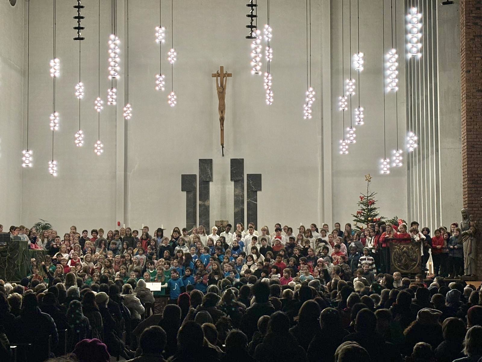 Alle beteiligten Schulen präsentierten jeweils ein eigenes Lied, zudem sangen alle Kinder gemeinsam vier stimmungsvolle Weihnachtslieder – was für ein beeindruckender Klang! Der festliche Rahmen der St.-Albert-Kirche machte den Abend zu einem unvergesslichen Erlebnis. Die Kinder konnten ihre Freude an der Musik mit ihren Eltern und allen weiteren Gästen teilen.